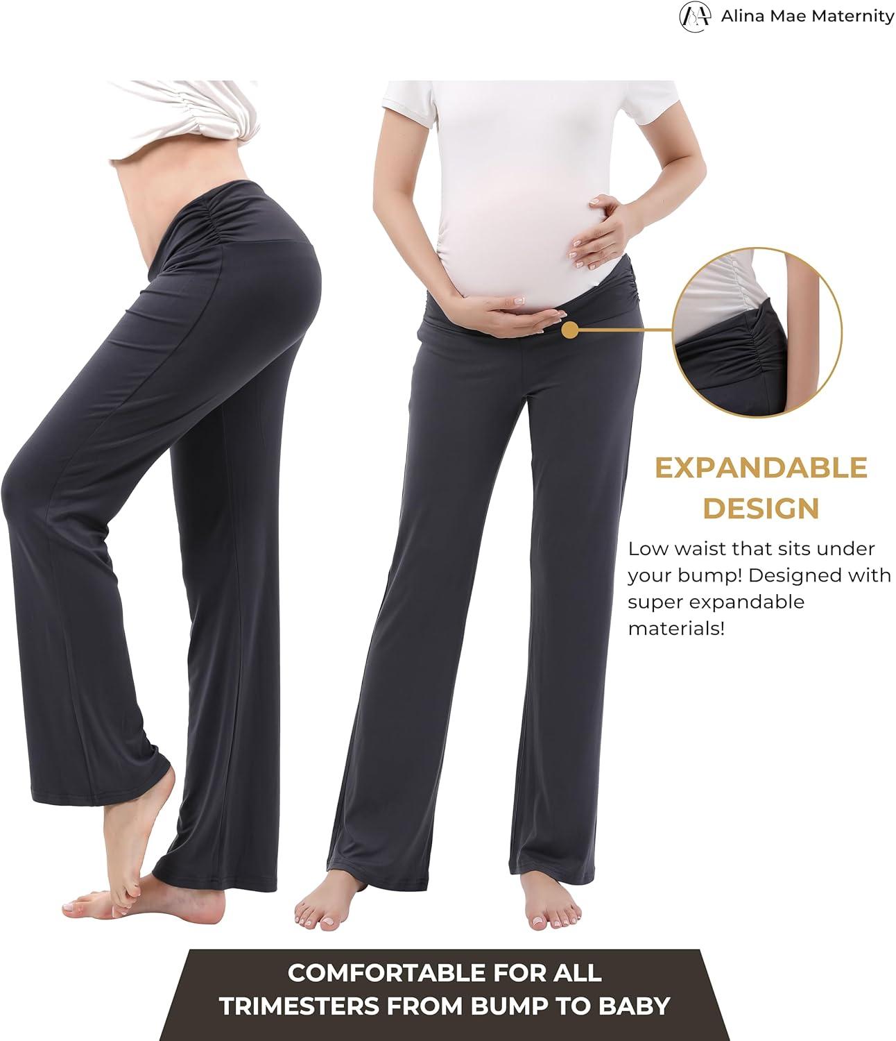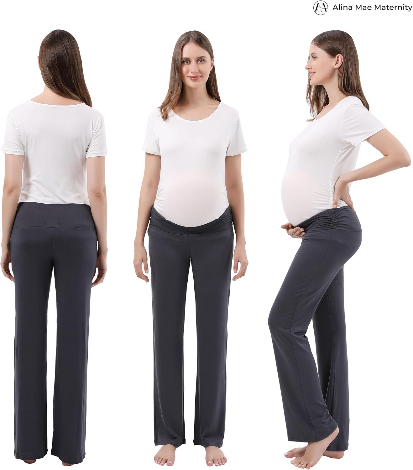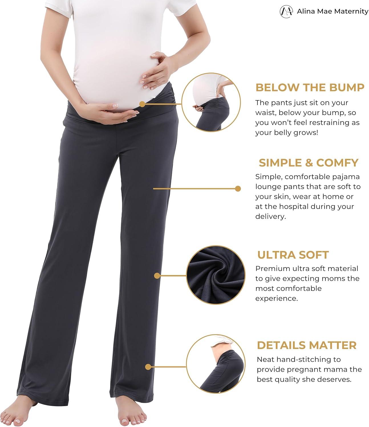 Don’t miss out on our limited-time offer: get a free {accessory} with your purchase of Alina Mae Maternity Women Pajama Pant Stretchy Comfy Wide Soft Palazzo Elastic Pregnancy Lounge Casual PJs(Dark Gray).