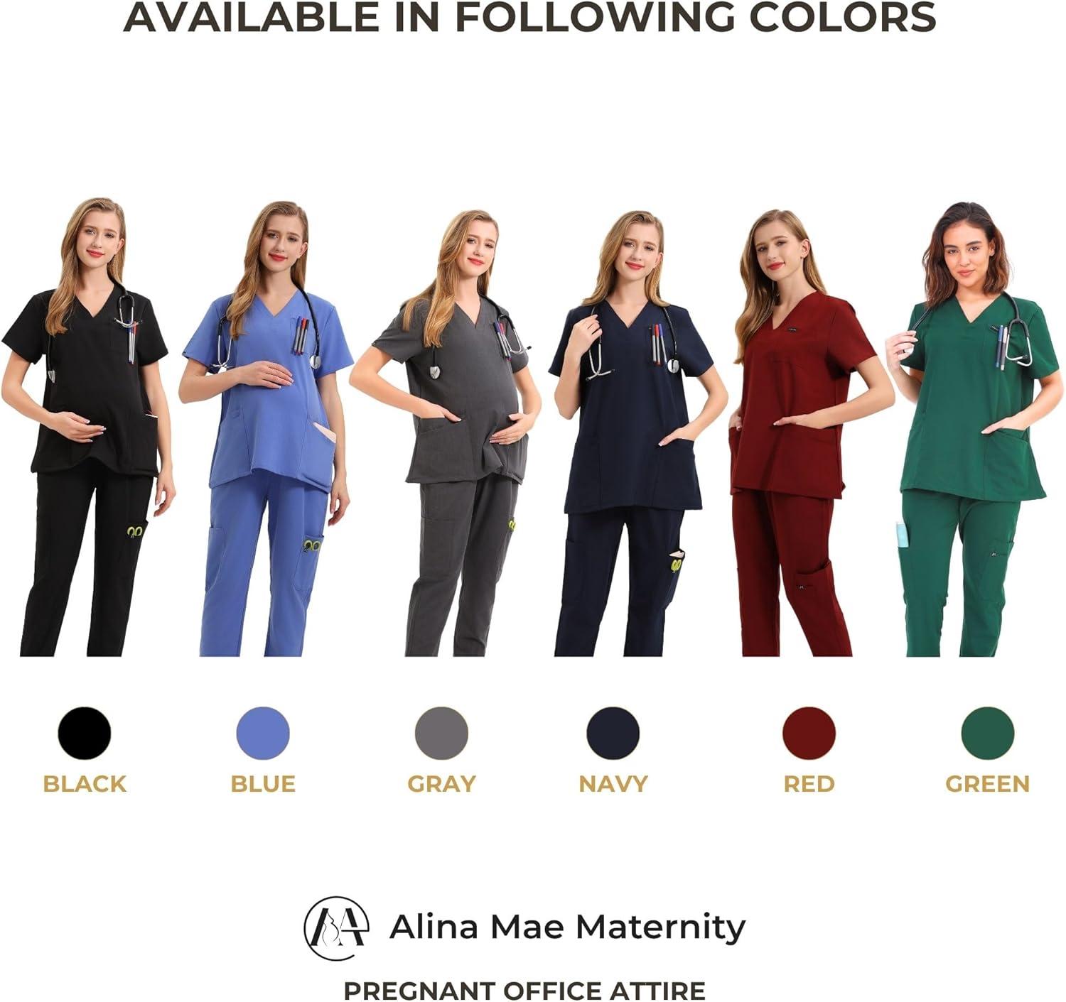 Maternity Scrubs Set for Women Nursing Scrub Top Pregnant Jogger Pants Pockets(Navy)