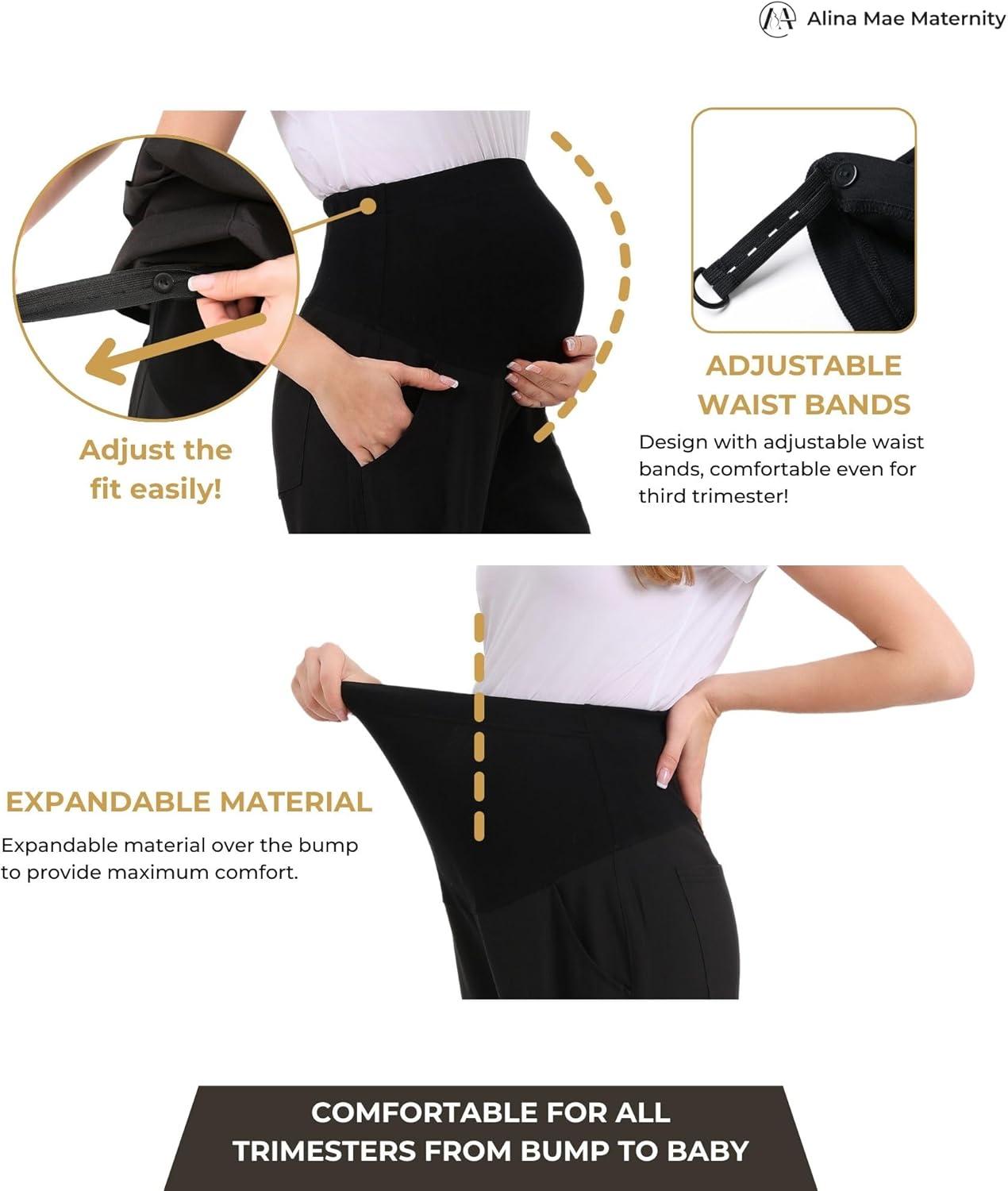 Maternity Scrub Pants for Women(Black Open Bottom)