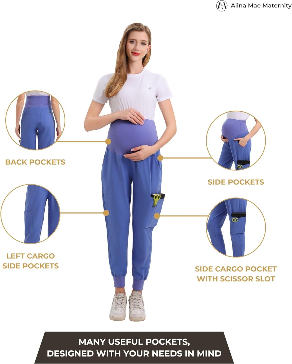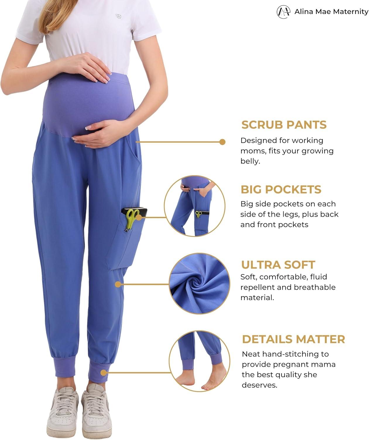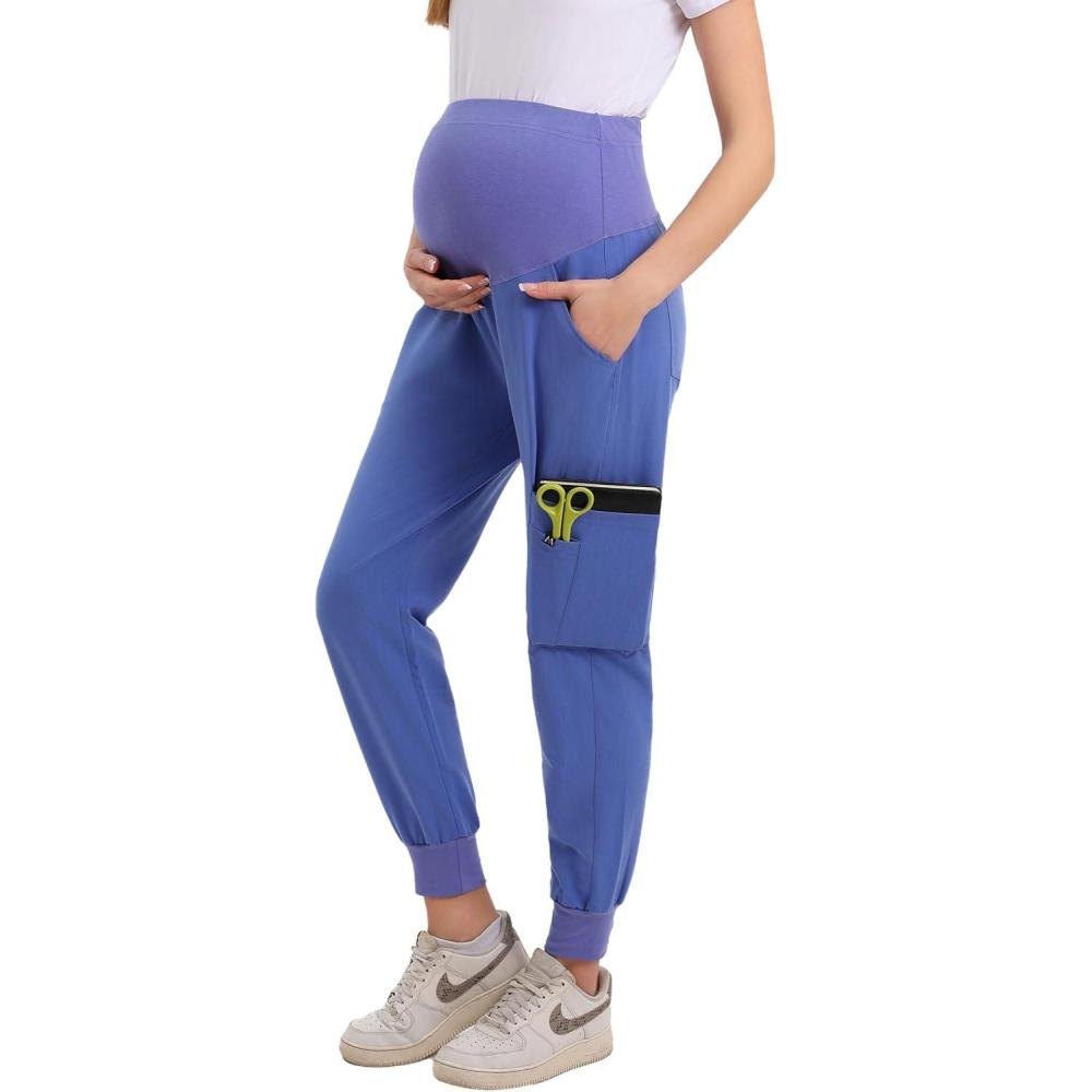 Maternity Women Scrub Jogger Pants for Pregnant Doctor Uniform Pant Nurse Scrub(Blue Jogger)