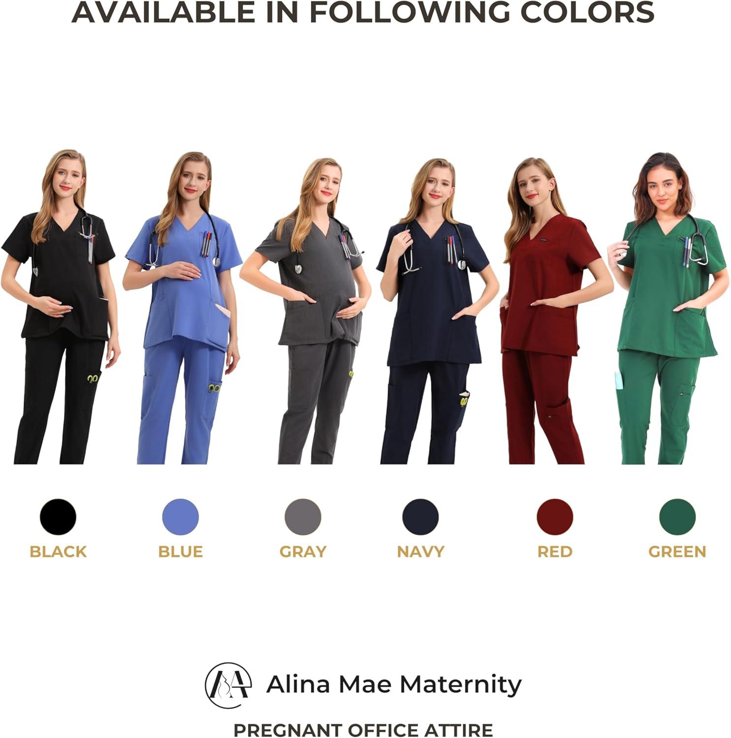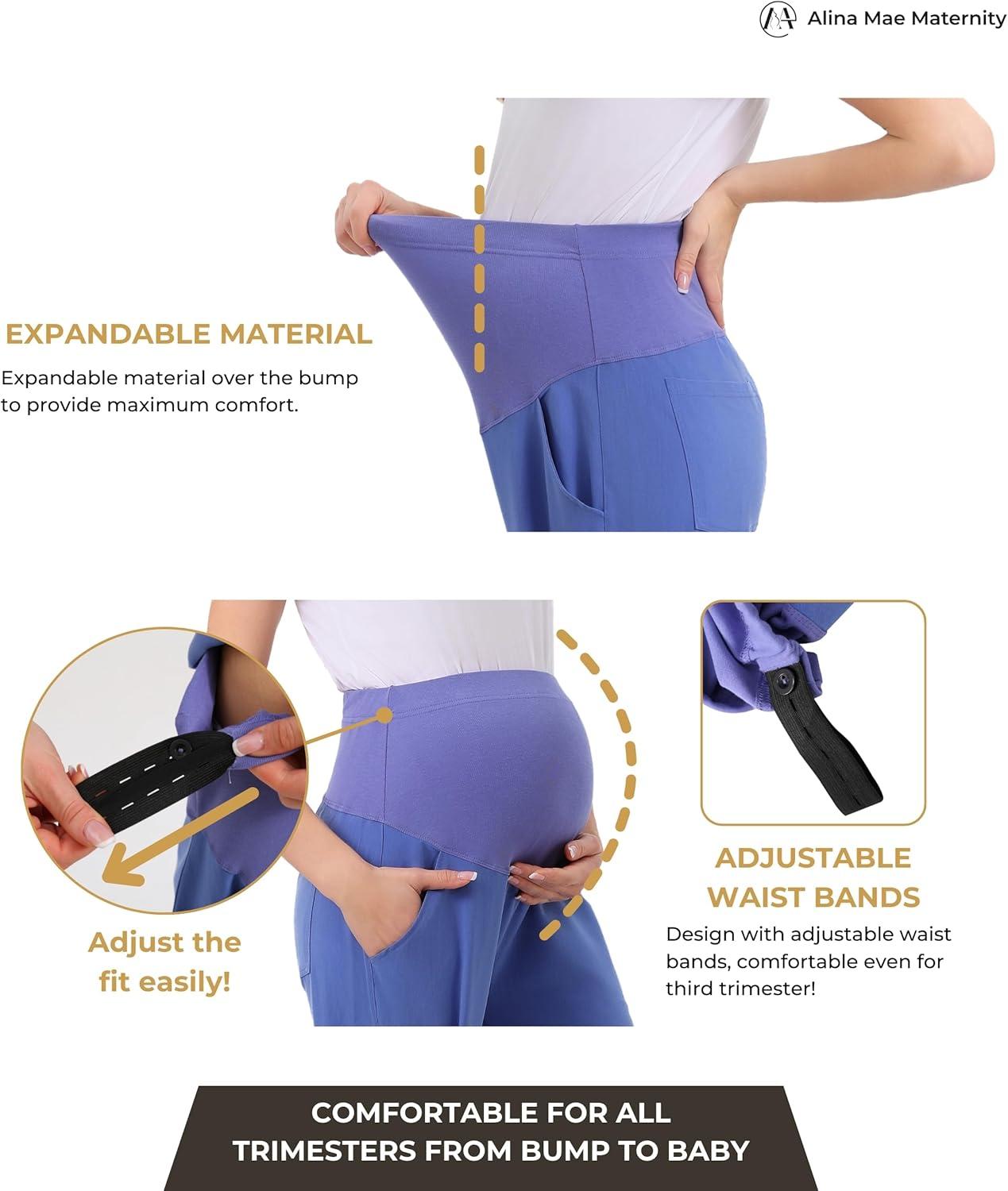 Maternity Women Scrub Jogger Pants for Pregnant Doctor Uniform Pant Nurse Scrub(Blue Open Bottom)