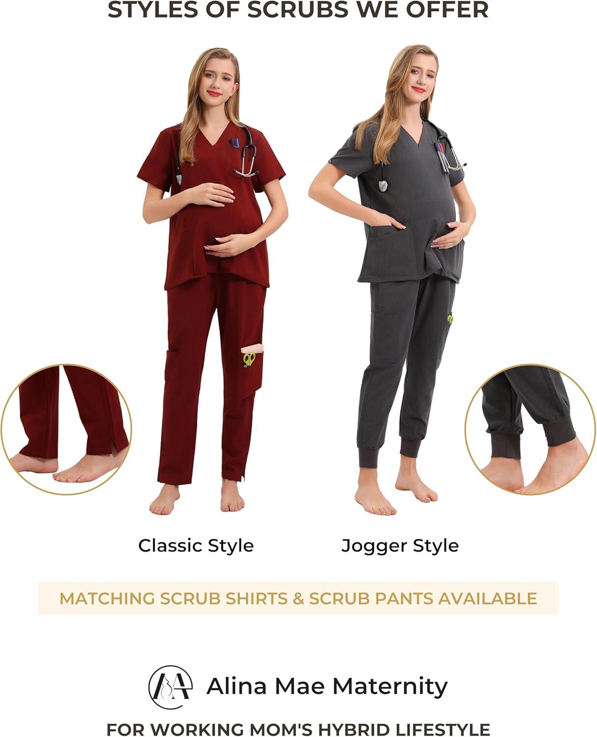Maternity Women Scrub Jogger Pants for Pregnant Doctor Uniform Pant Nurse Scrub(Red Jogger)