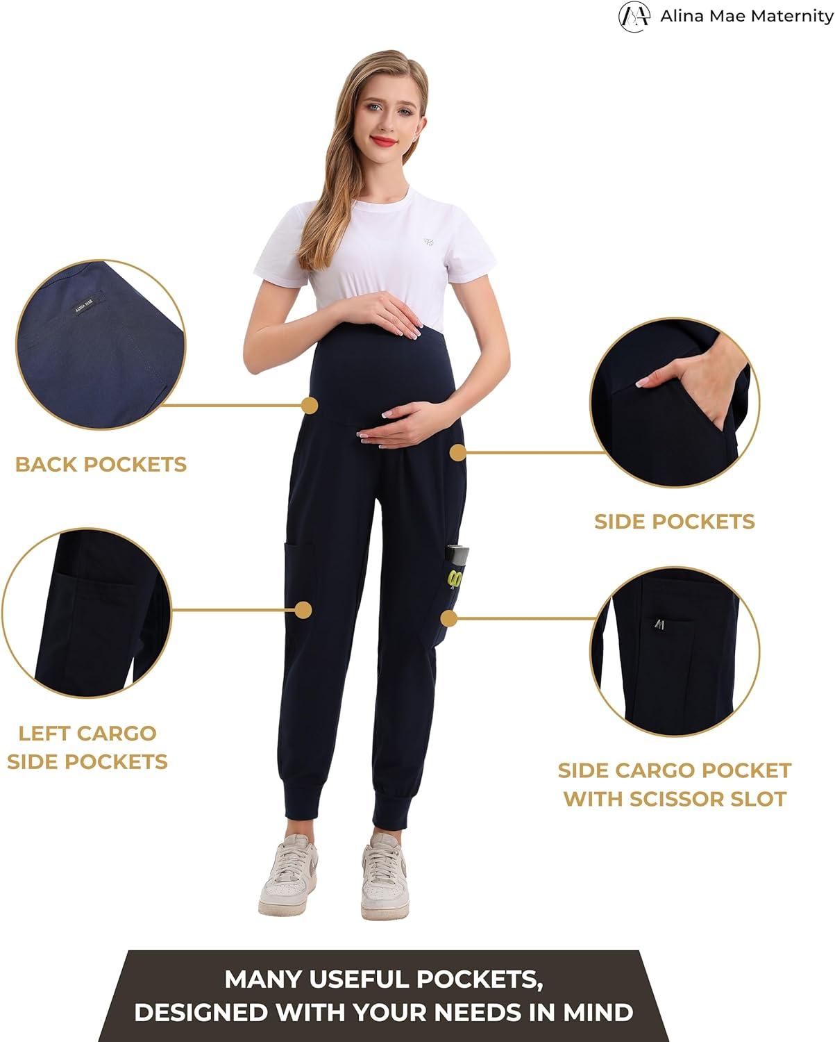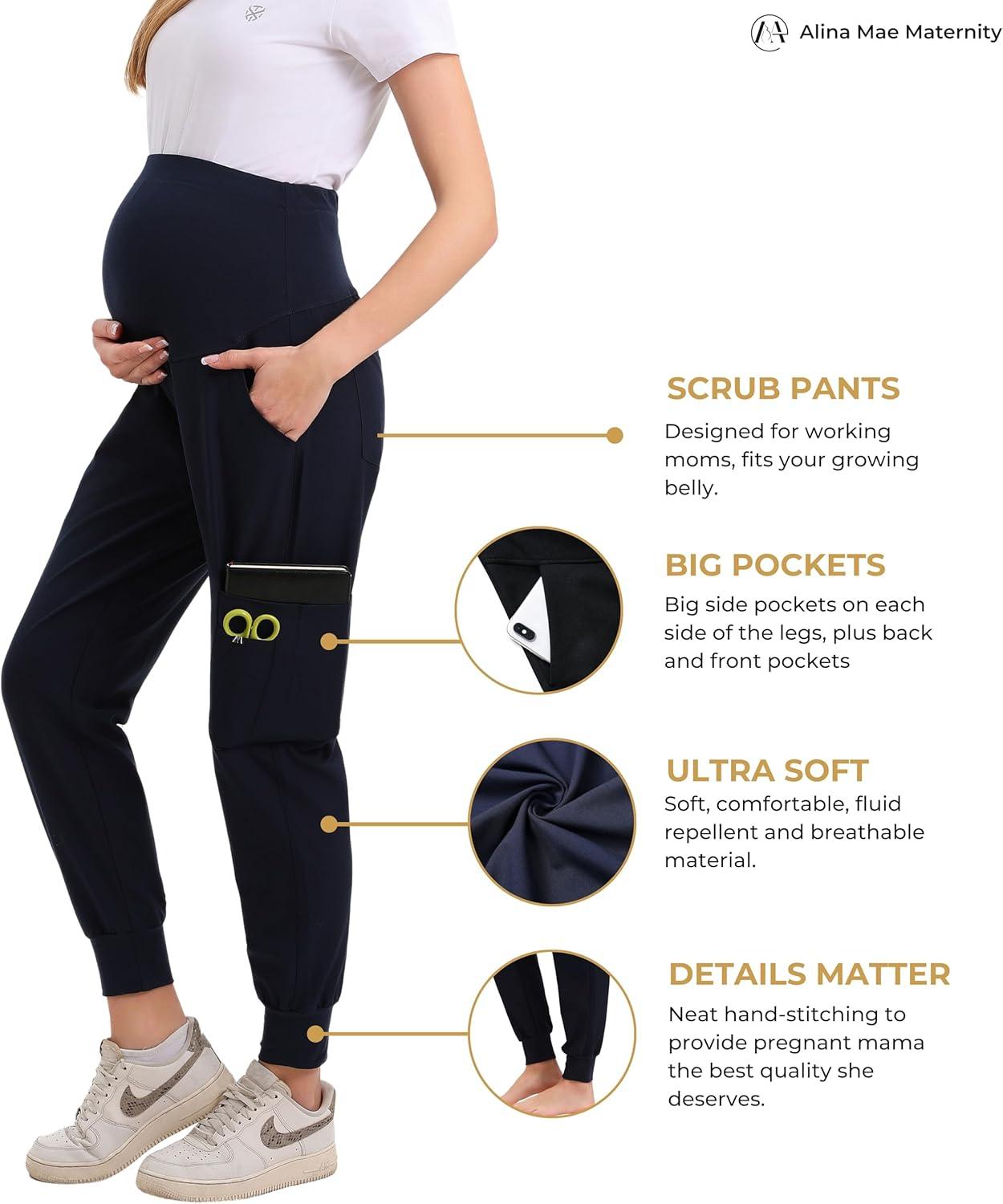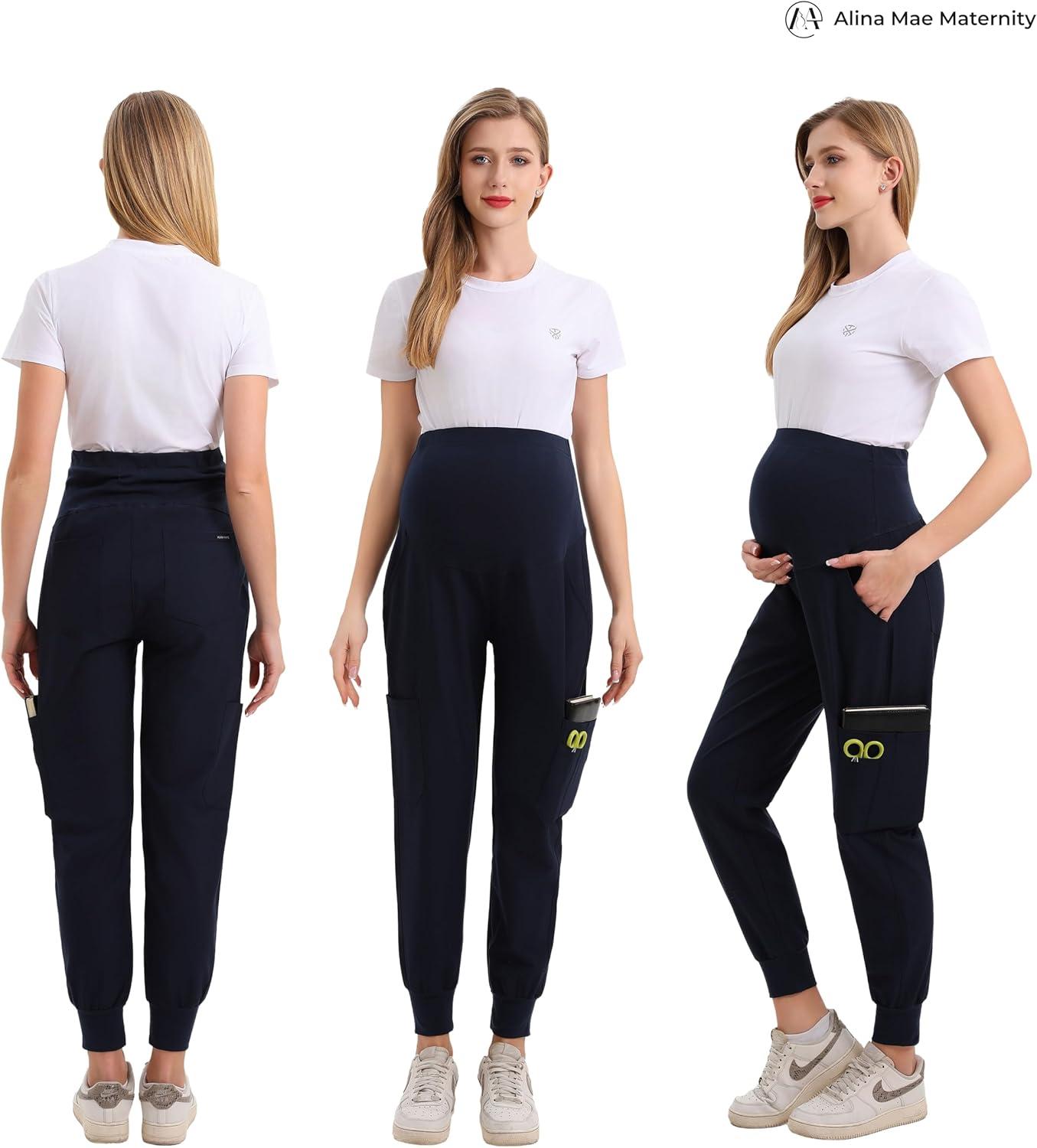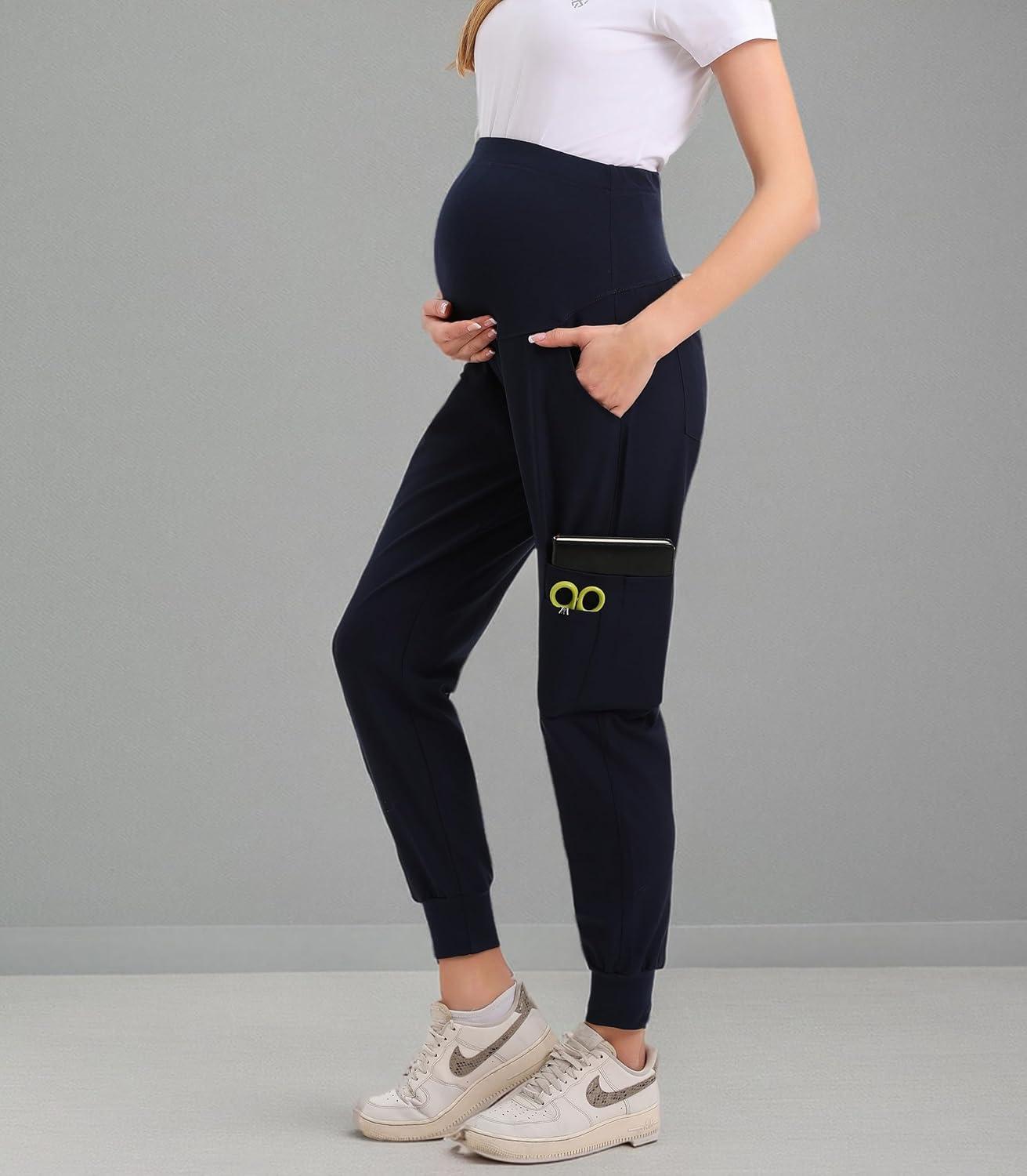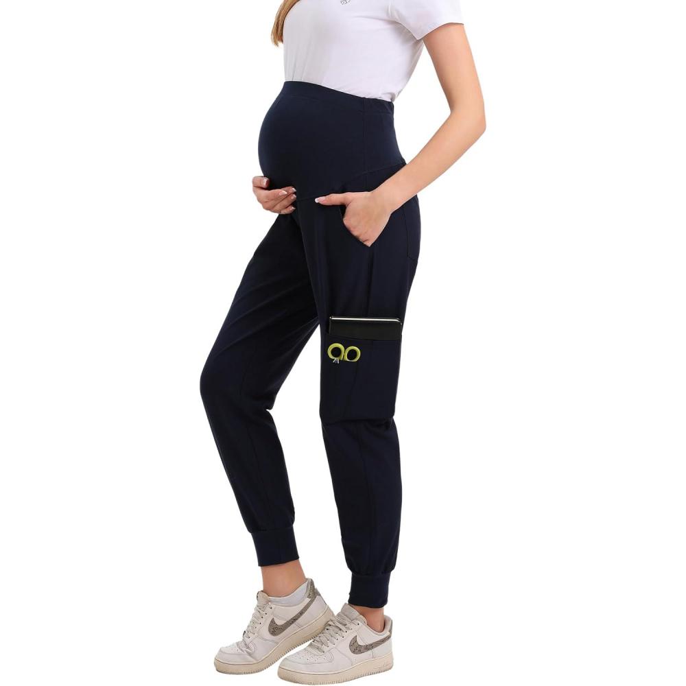 Maternity Women Scrub Jogger Pants for Pregnant Doctor Uniform Pant Nurse Scrub(Navy Jogger)
