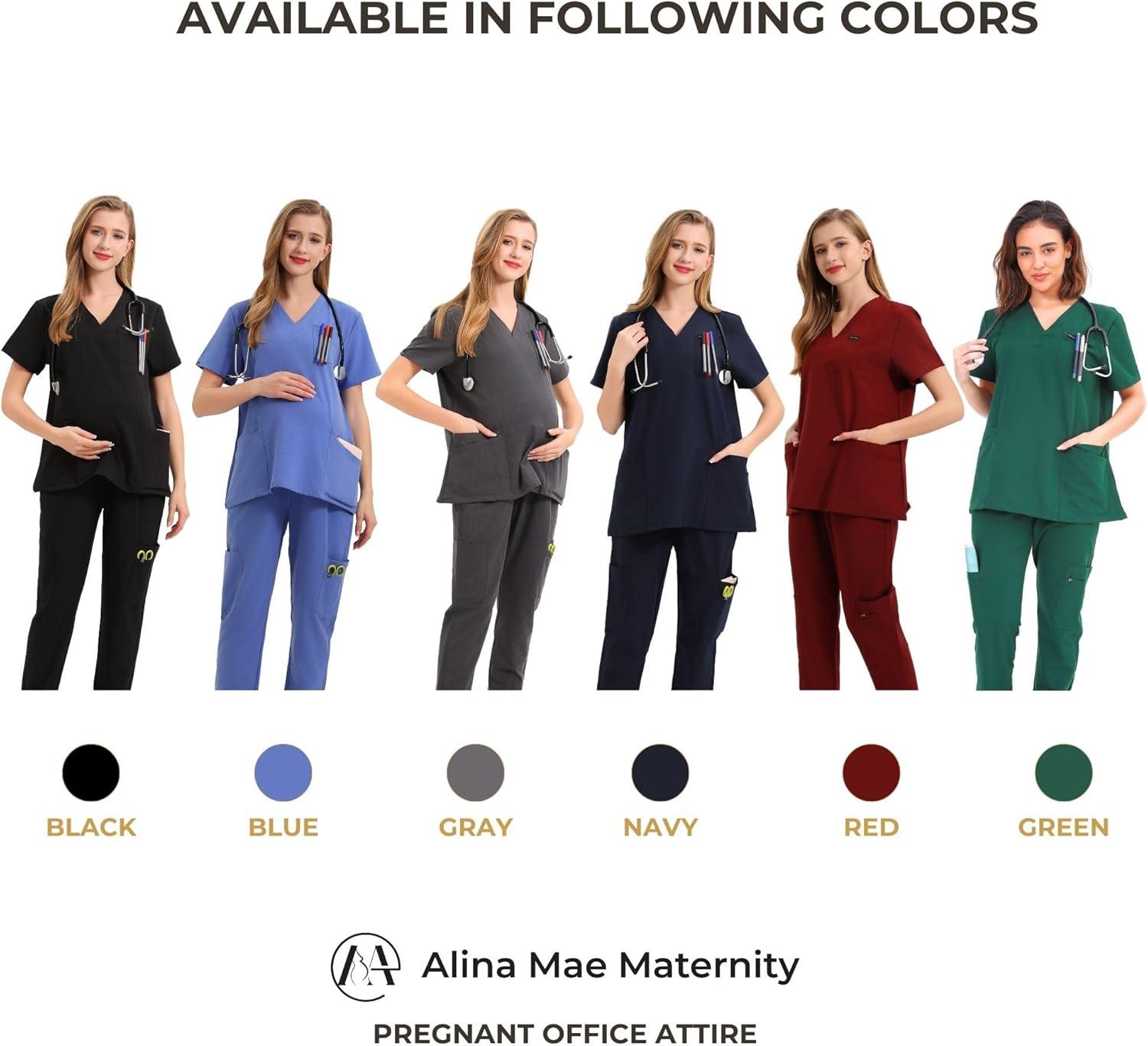 Maternity Scrubs Set for Women Nursing Scrub Top Pregnant Jogger Pants Pockets(Navy)