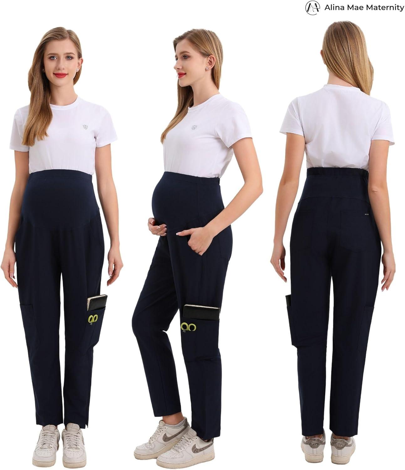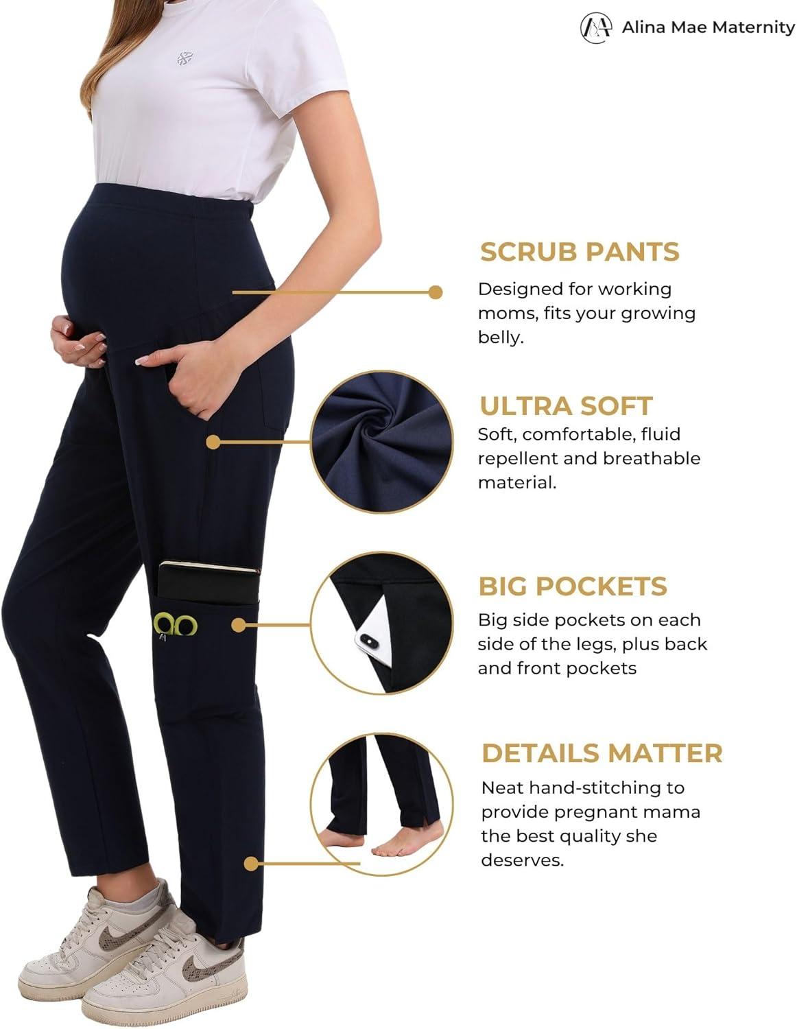 imageMaternity Women Scrub Jogger Pants for Pregnant Doctor Uniform Pant Nurse ScrubNavy Open Bottom