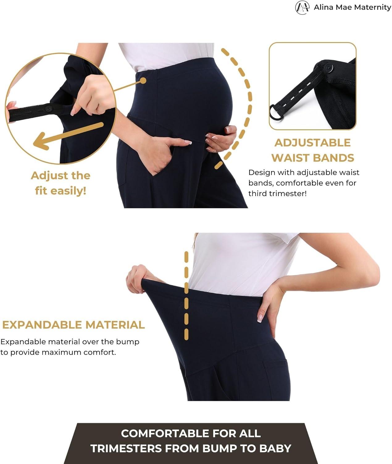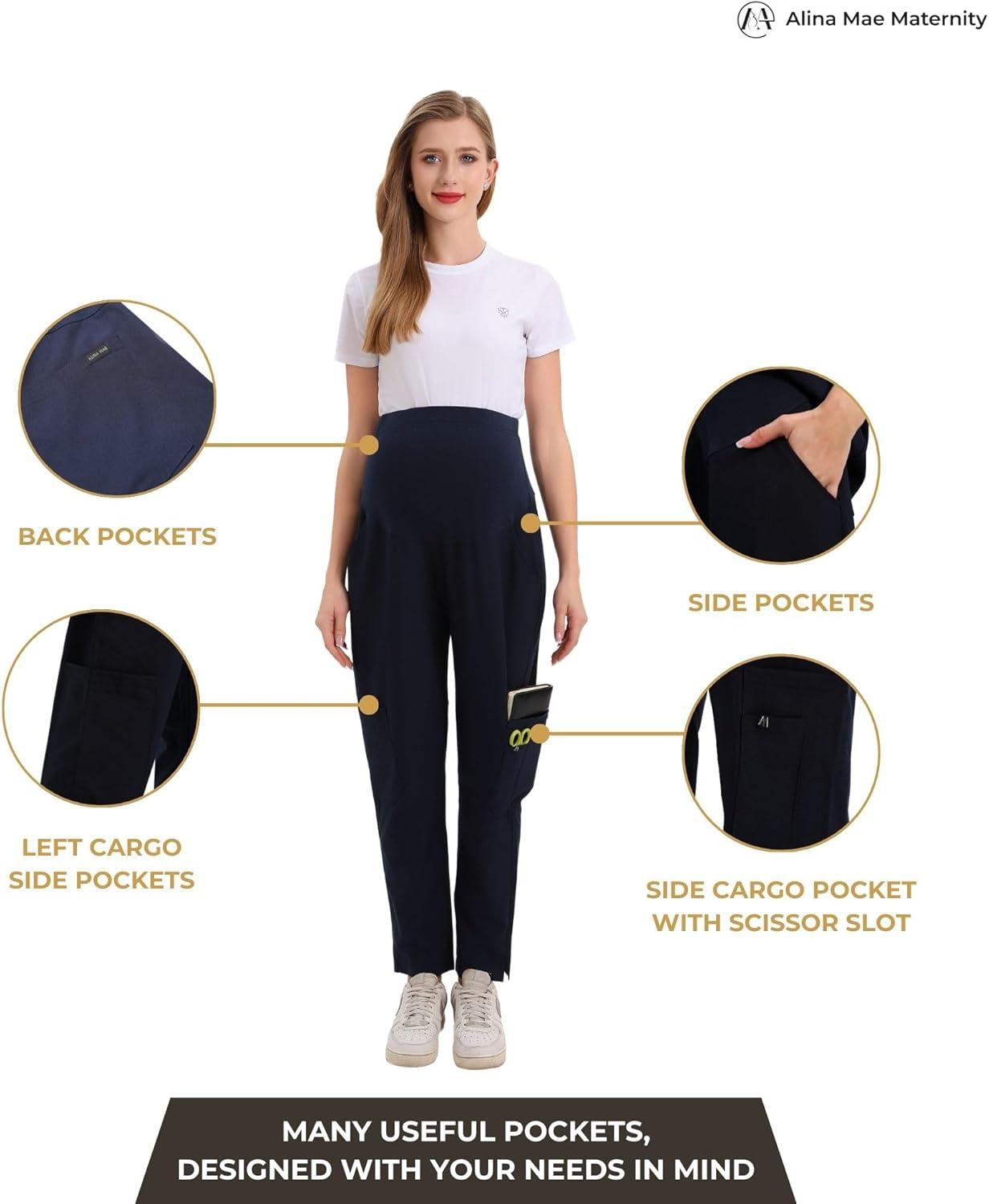Maternity Women Scrub Jogger Pants for Pregnant Doctor Uniform Pant Nurse Scrub(Navy Open Bottom)