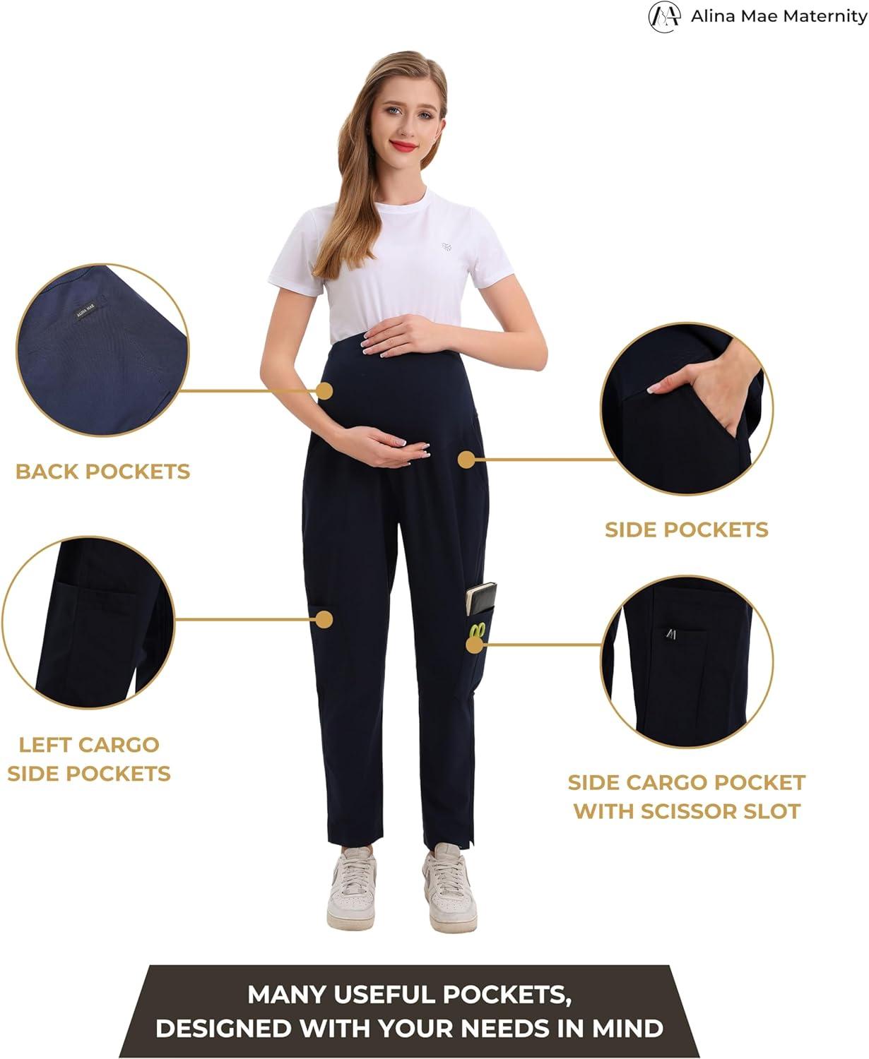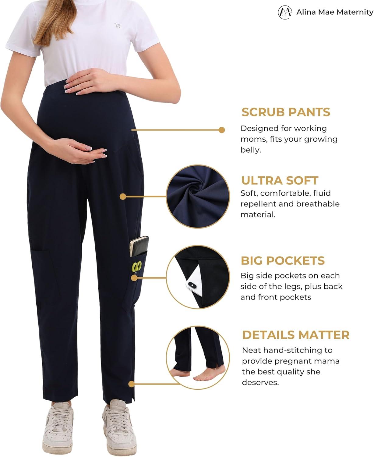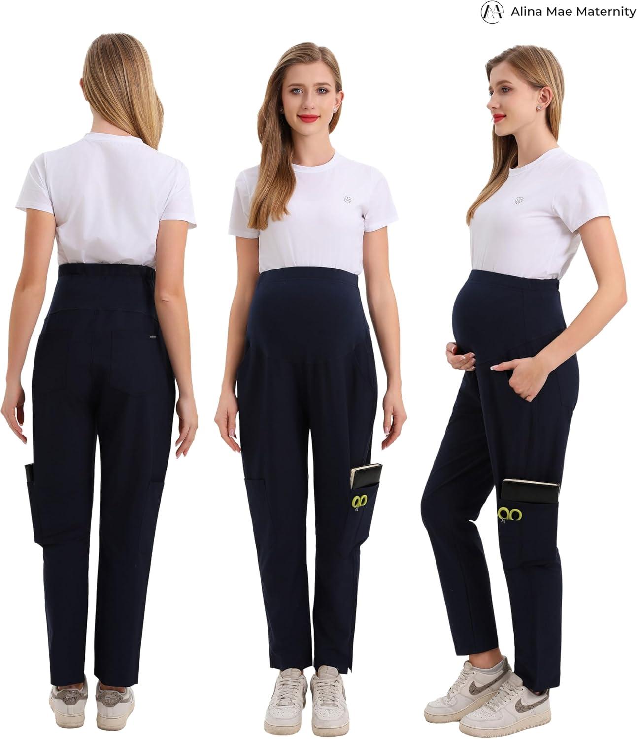 Maternity Women Scrub Jogger Pants for Pregnant Doctor Uniform Pant Nurse Scrub(Navy)